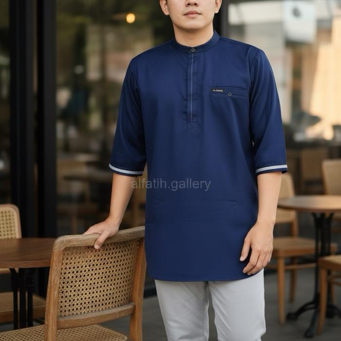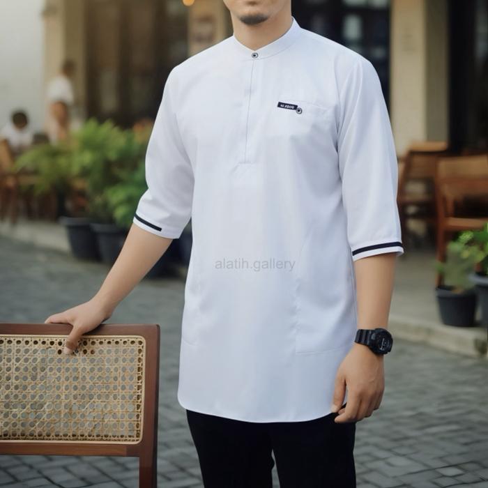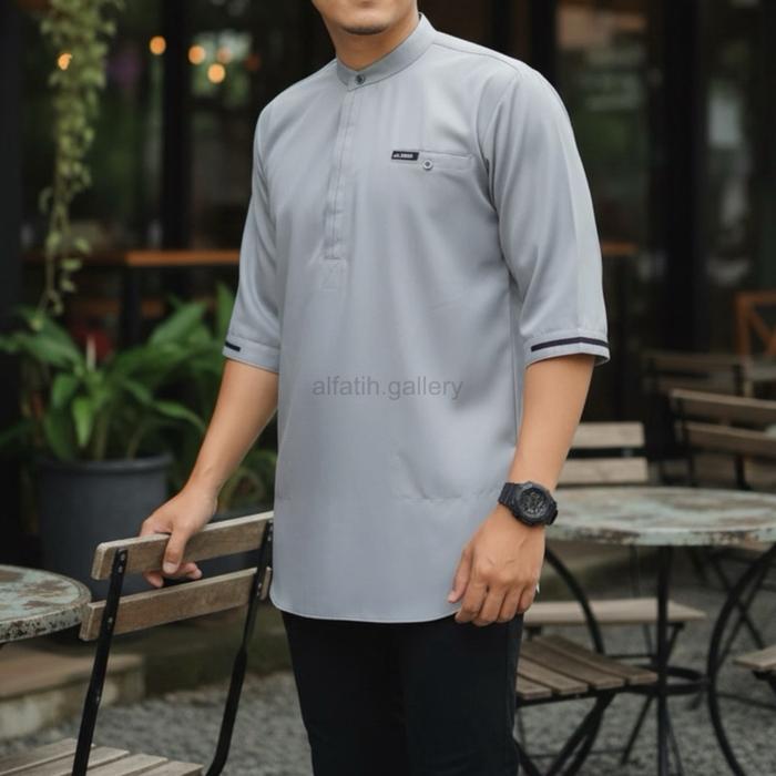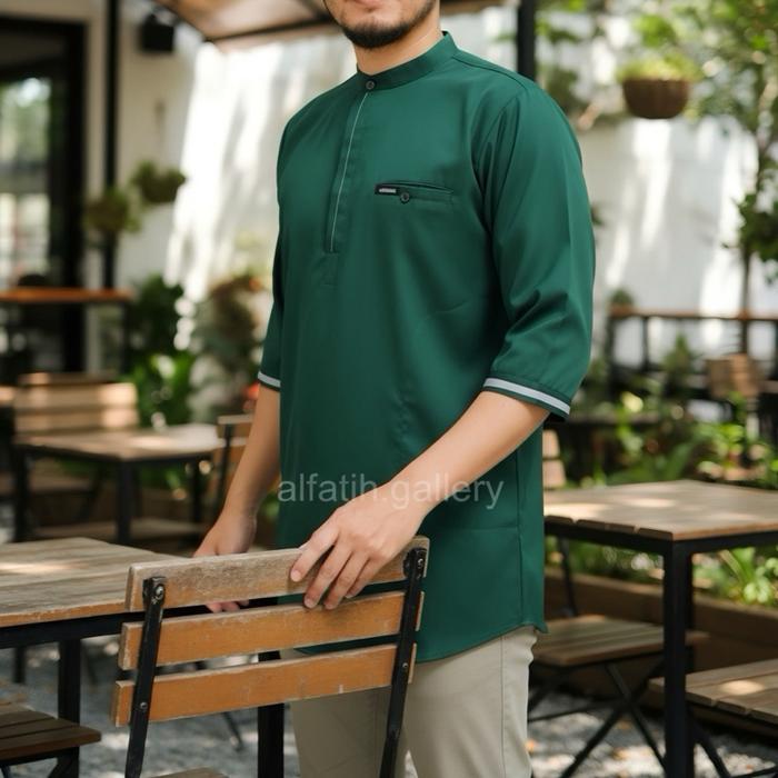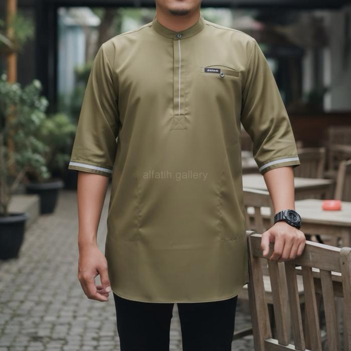 [Star] Baju Koko Pria Modern Lengan 3/4 | Koko Muslim Slim Fit Premium | Adem & Nyaman - Olive, M