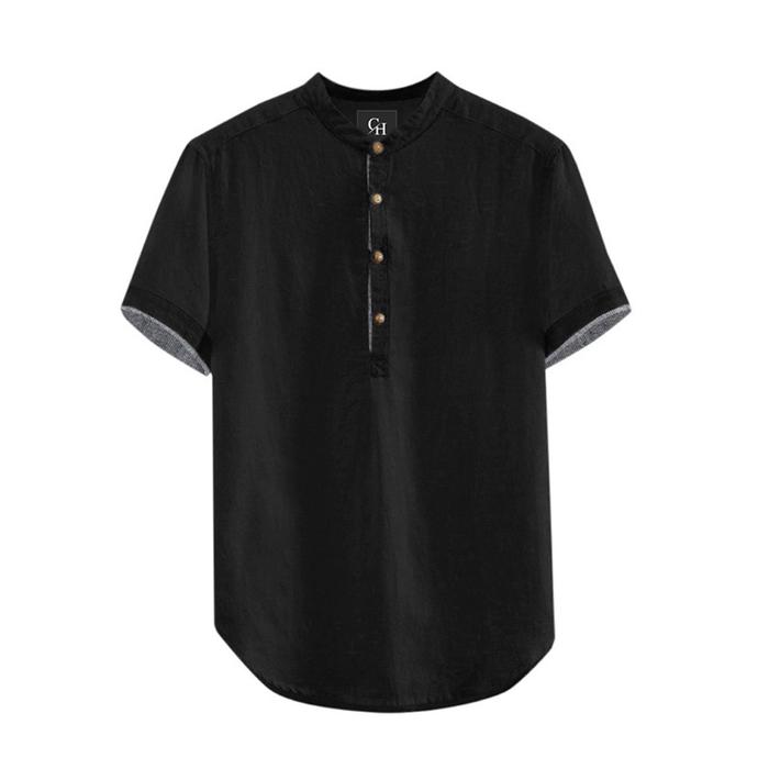 [Star] Baju Koko Pria Kurta Dewasa Tangan Pendek HANAFI Muslim Putih Hitam Army Biru - Putih, S