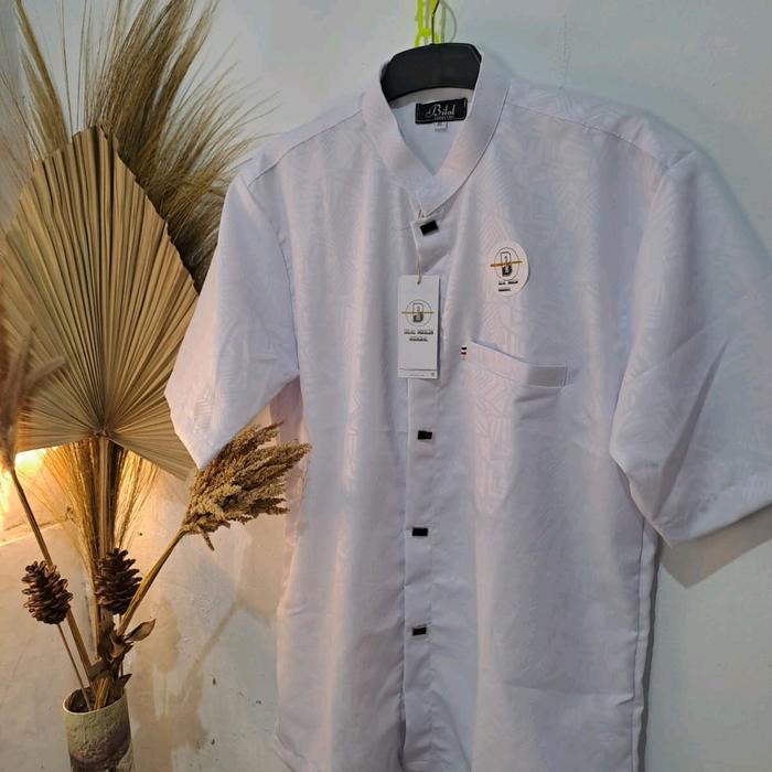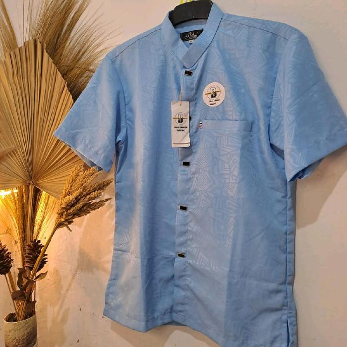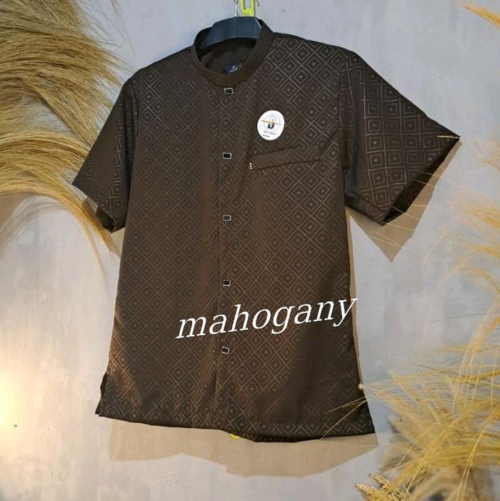 [Star] Baju Koko Sultan Tangan Pendek Pria Dewasa Elegan Muslim Embos Kain Halus Adem Lembut - Panjang, Katun Motif Teba