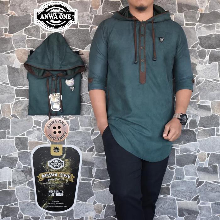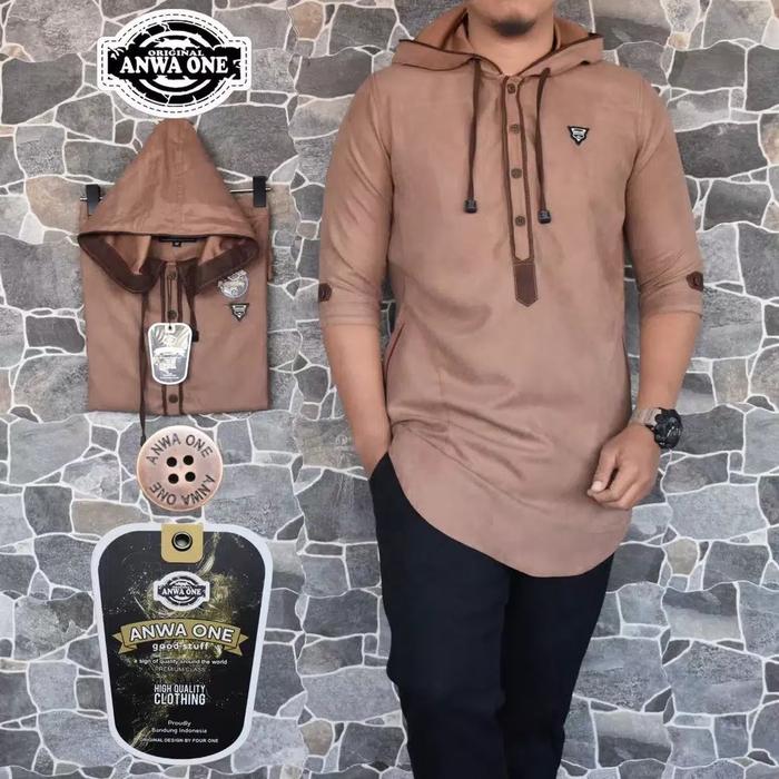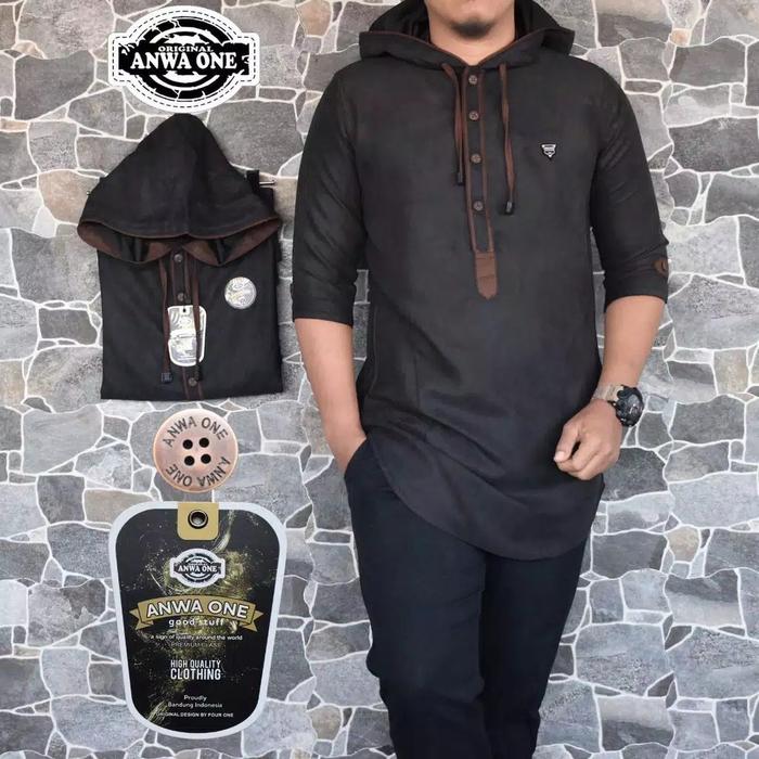 [Star] Baju Muslim Pria Koko Kurta Hoodie Madina Bahan Tebal Terbaru 2023 - Hitam, M
