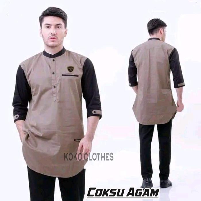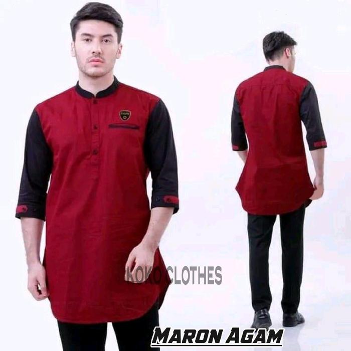 [Star] Baju Koko Kurta Lengan 3/4 pria Dewasa Muslim Nyaman dan Adem Lembut - Maron, M