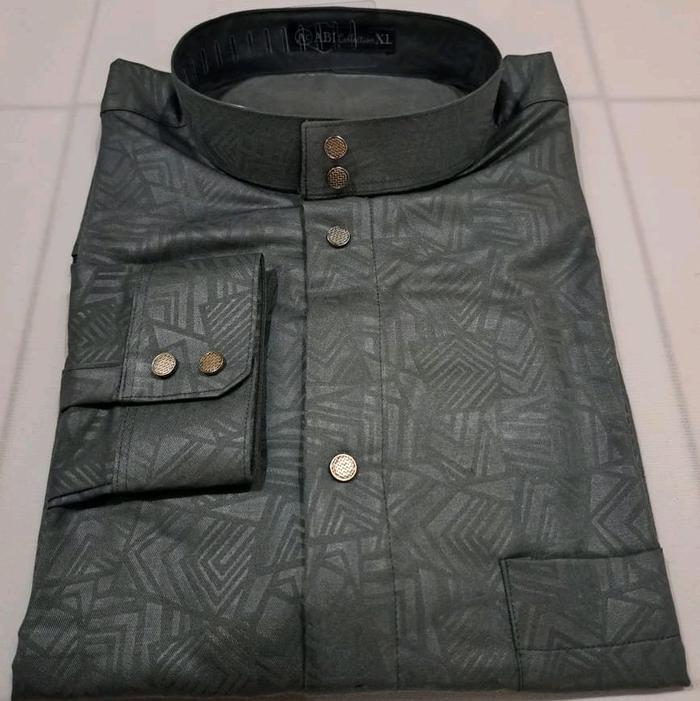[Star] Koko Pria Dewasa Motif Embos Sultan Premium Kancing Import Bahan Katun Toyobo Lembut Adem model slim fit - hitam,