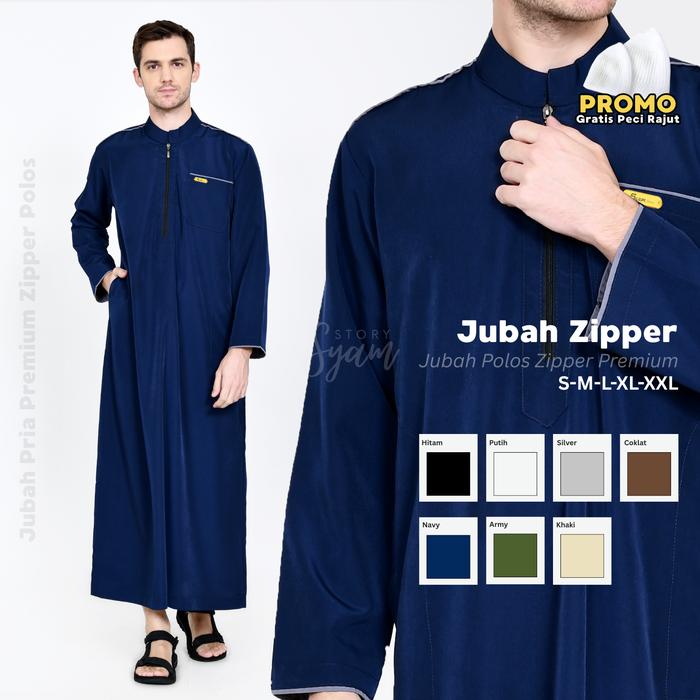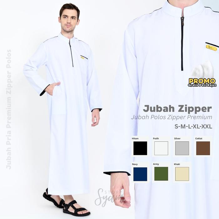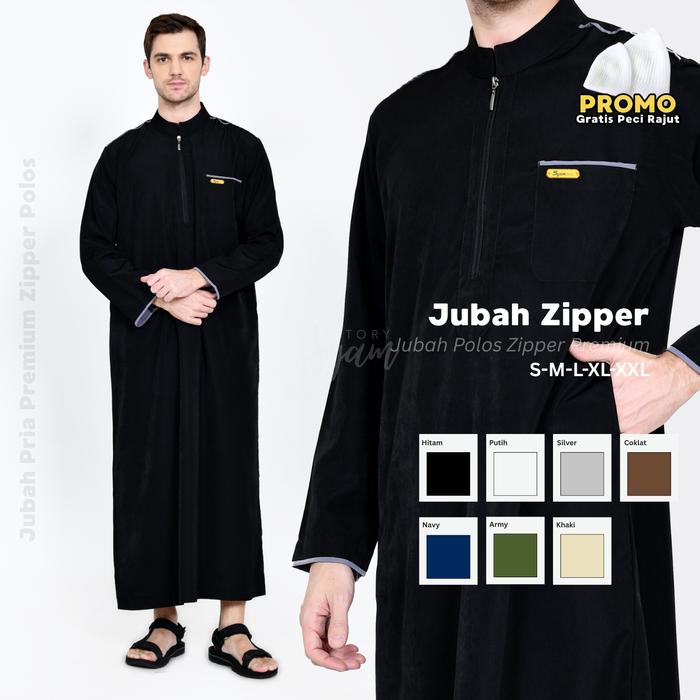 [Star] Jubah Pria Dewasa Jumbo Size Premium Jubah Muslim Polos Lengan Panjang Dada Zipper Kerah Anti Daki Bonus Peci Raj