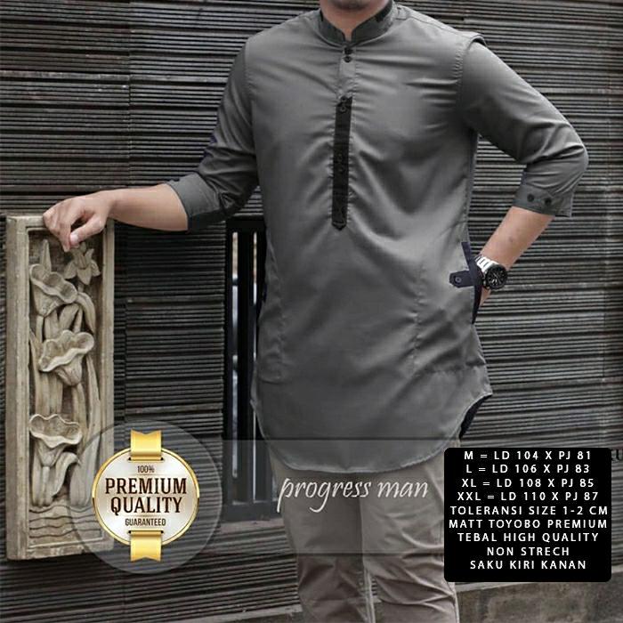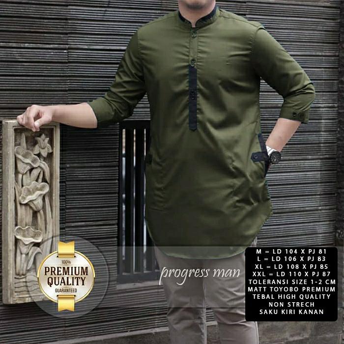 [Star] Kerah Shanghai Gamis Pria Baju Koko Muslim Tangan Panjang 3/4 - Army, M