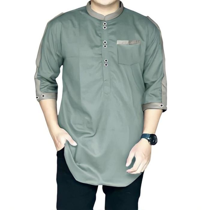 [Star] PIK - Koko Kurta Zaka Dewasa Baju Pria Jumbo Kurta Muslim Panjang Katun Toyobo - Abu, S