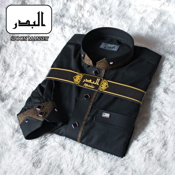 [Star] Terlaris Jubah Al Badar katun spun premium kombinasi lengan manset jubah pria katun |Gamis Pria anti UV - Hitam,