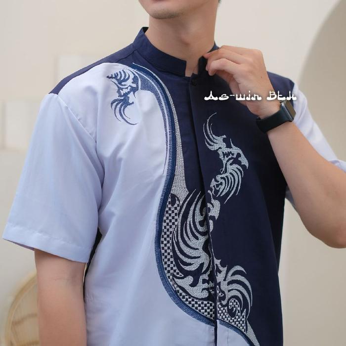 [Star] Baju Koko Bordir Muslim Pria Dewasa Lengan Pendek dan Panjang Viral 2022 Motif Naga kain katun Nyaman dan Lembut