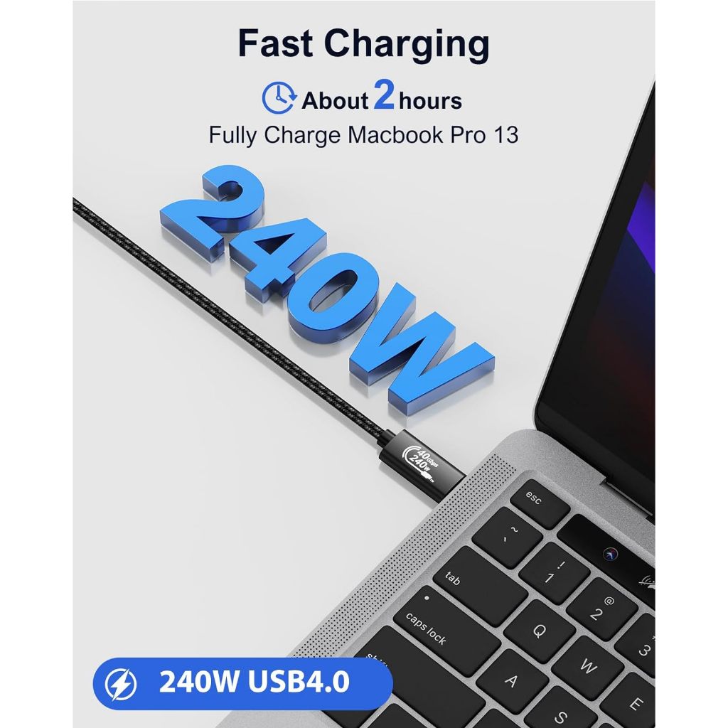 Kabel Thunderbolt 4 Data Transfer 40 Gbps 8Khd Pd 240W 2/3 Meter Usb 4.0