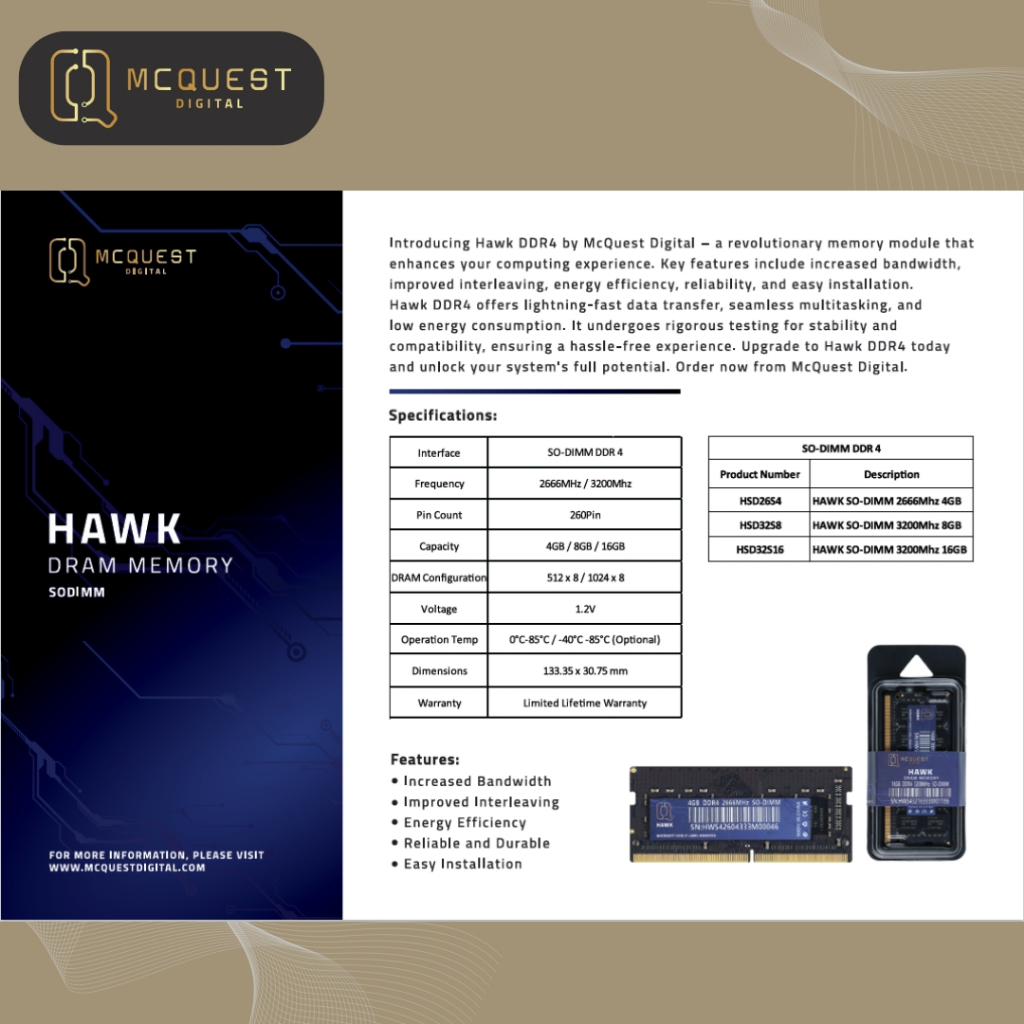 Mcquest Hawk Sodimm Ddr4 Pc25600 3200Mhz 8Gb - Memory Ram Laptop