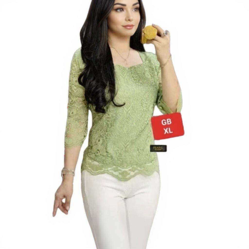 02 Blus Kebaya Brokat Lengan Lurus Pakaian Wanita DewasaAtasan TradisionalMewah Cantik dan Elegant