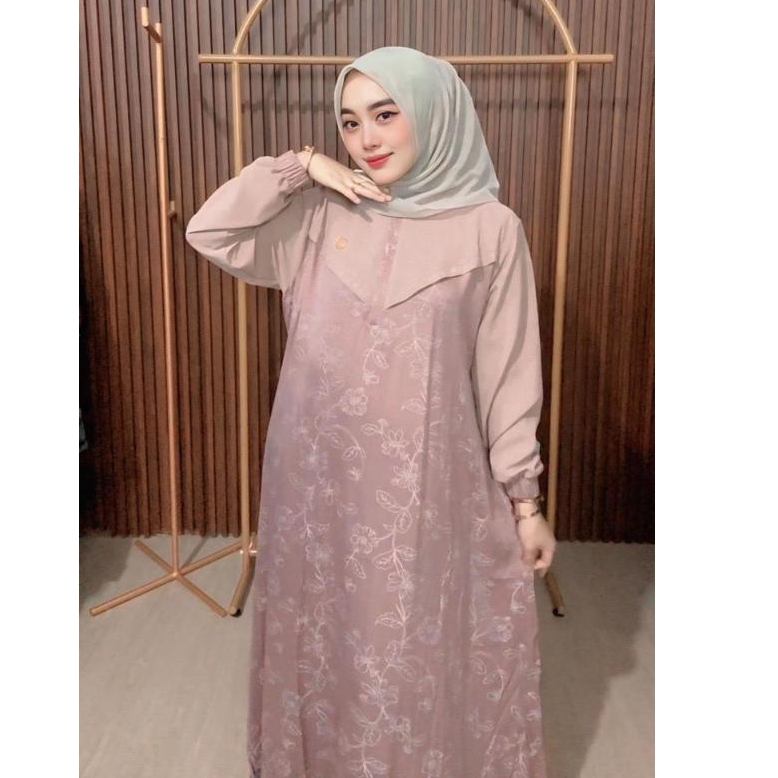 Gamis Lebaran Model Terbaru Bahan Rayon Jaguard Mix Sabrina Adem Jatuh Lembut Busui Dress Muslim Cantik Motif Kekinian