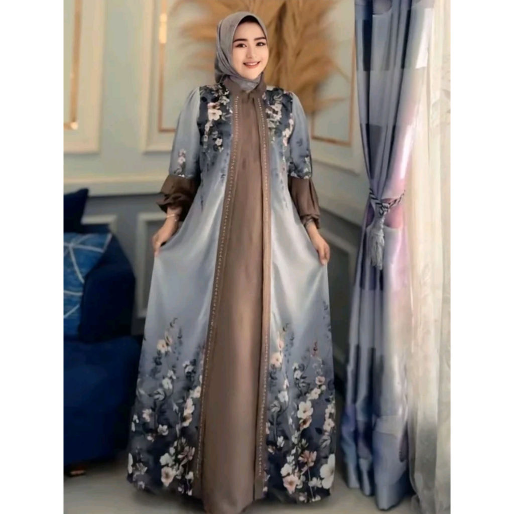 Gamis Ceruti Dinara Queen Motif Bunga Terbaru Busui
