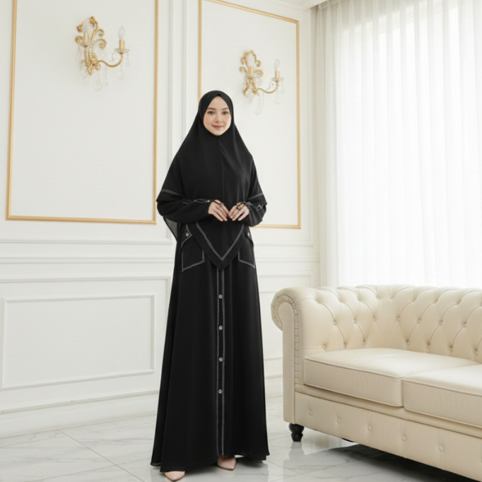 Gamis Abaya Jannaty Series Set Hijab - Bahan Sabrina Anti UV - Ukuran M - L - XL - XXL - 3XL - Abaya Syar'i Jumbo - Fash