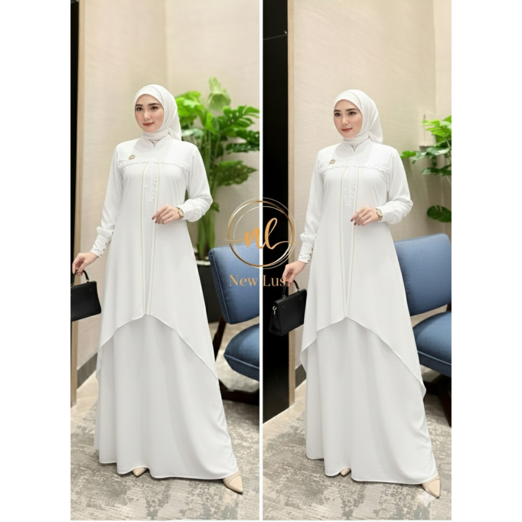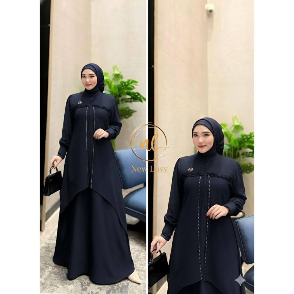 Gamis Wanita Sandrina Anti UV Bahan Cerruty Babydoll Lembut Swaroski Desain Mewah Warna Emerald Blue
