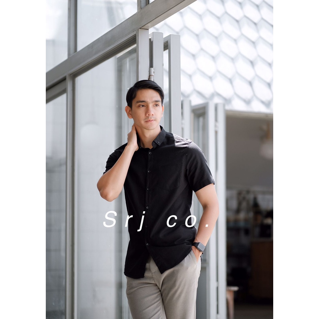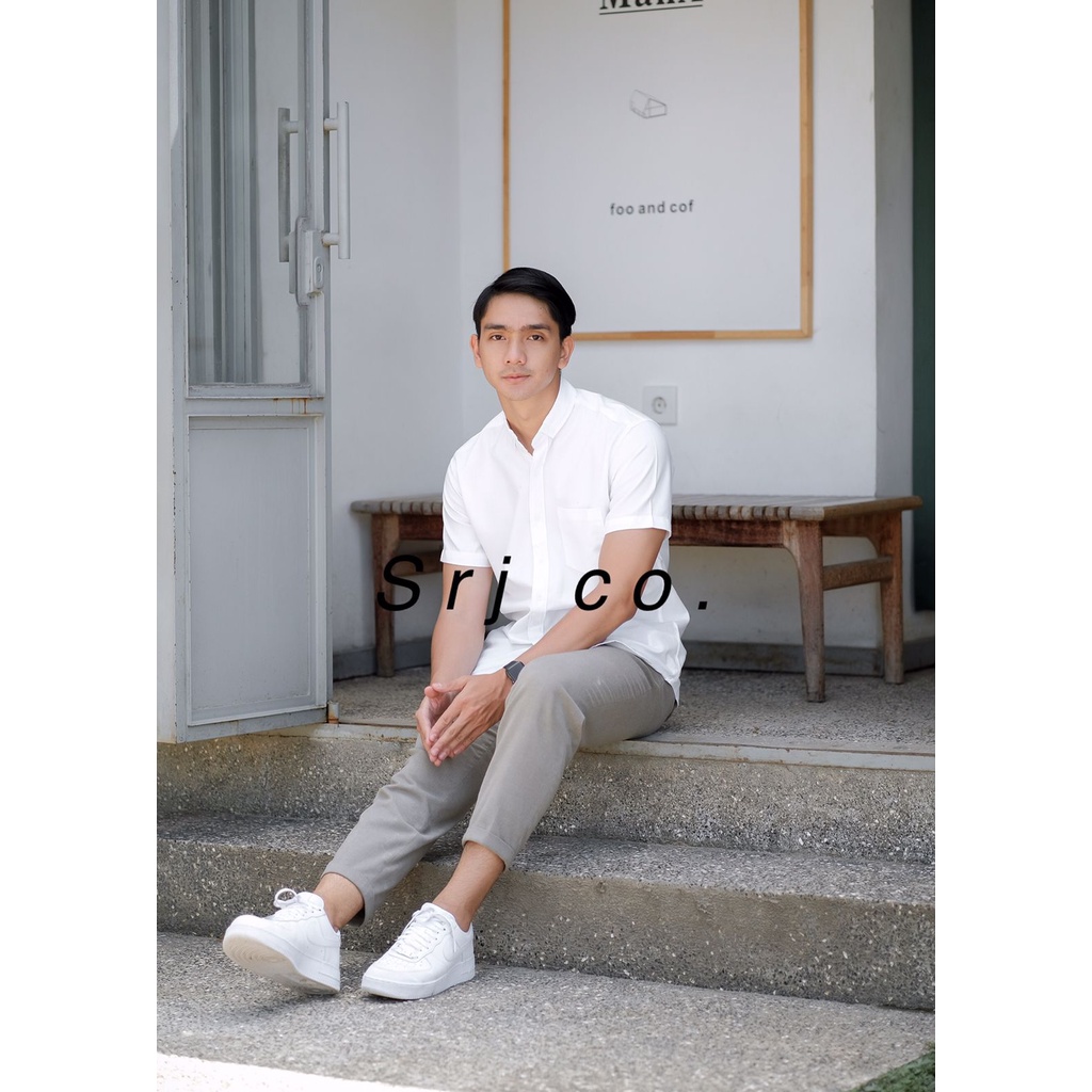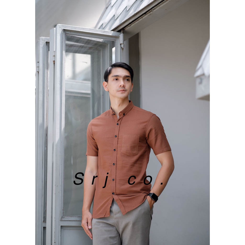 KEMEJA POLOS PRIA LENGAN PENDEK KEMEJA KASUAL PRIA WARNA HIJAU ARMY