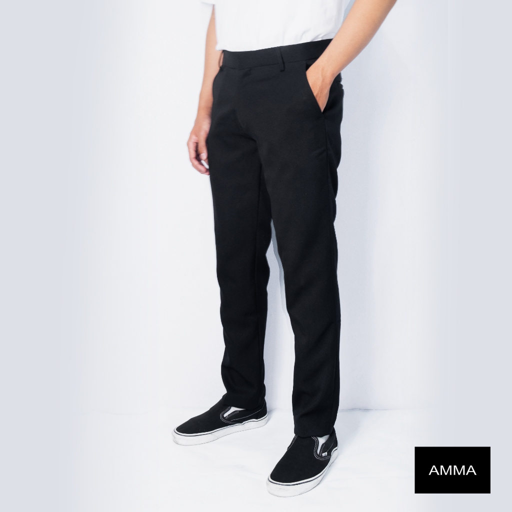 Celana Bahan Kain Panjang Formal Pria Slim fit Hitam