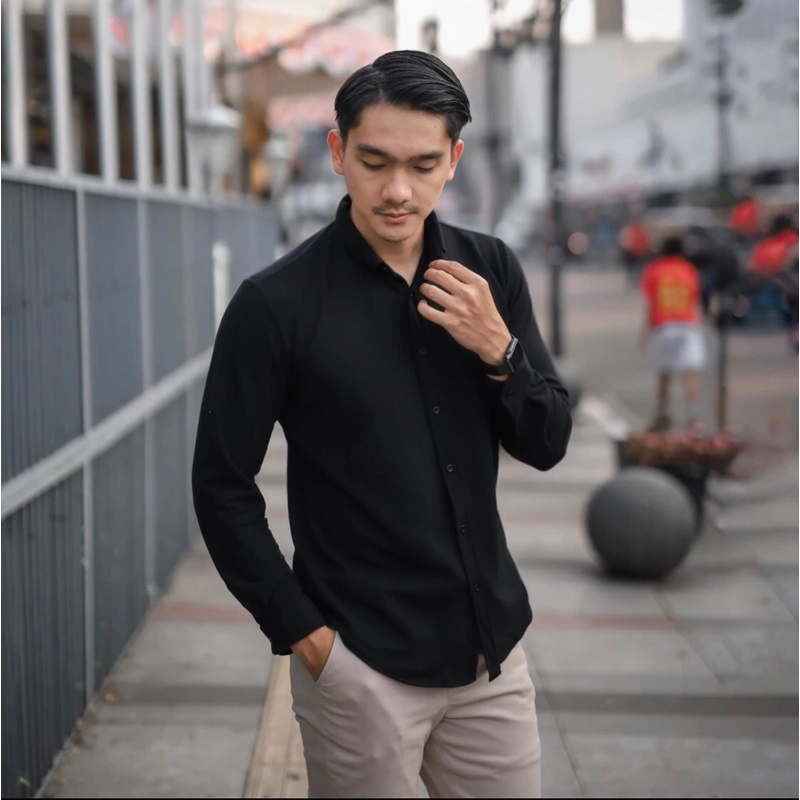 ALJOSA Kemeja Pria Polos Hitam Lengan Panjang Kerja Kantor