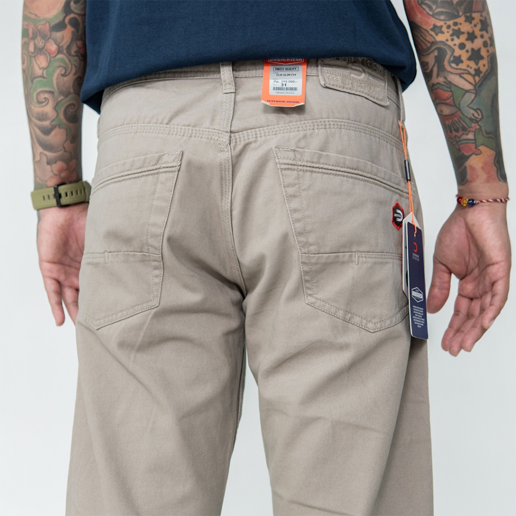 Celana Panjang Pria Bahan Kanvas Standar Reguler Fit Warna Krem Size 27-38