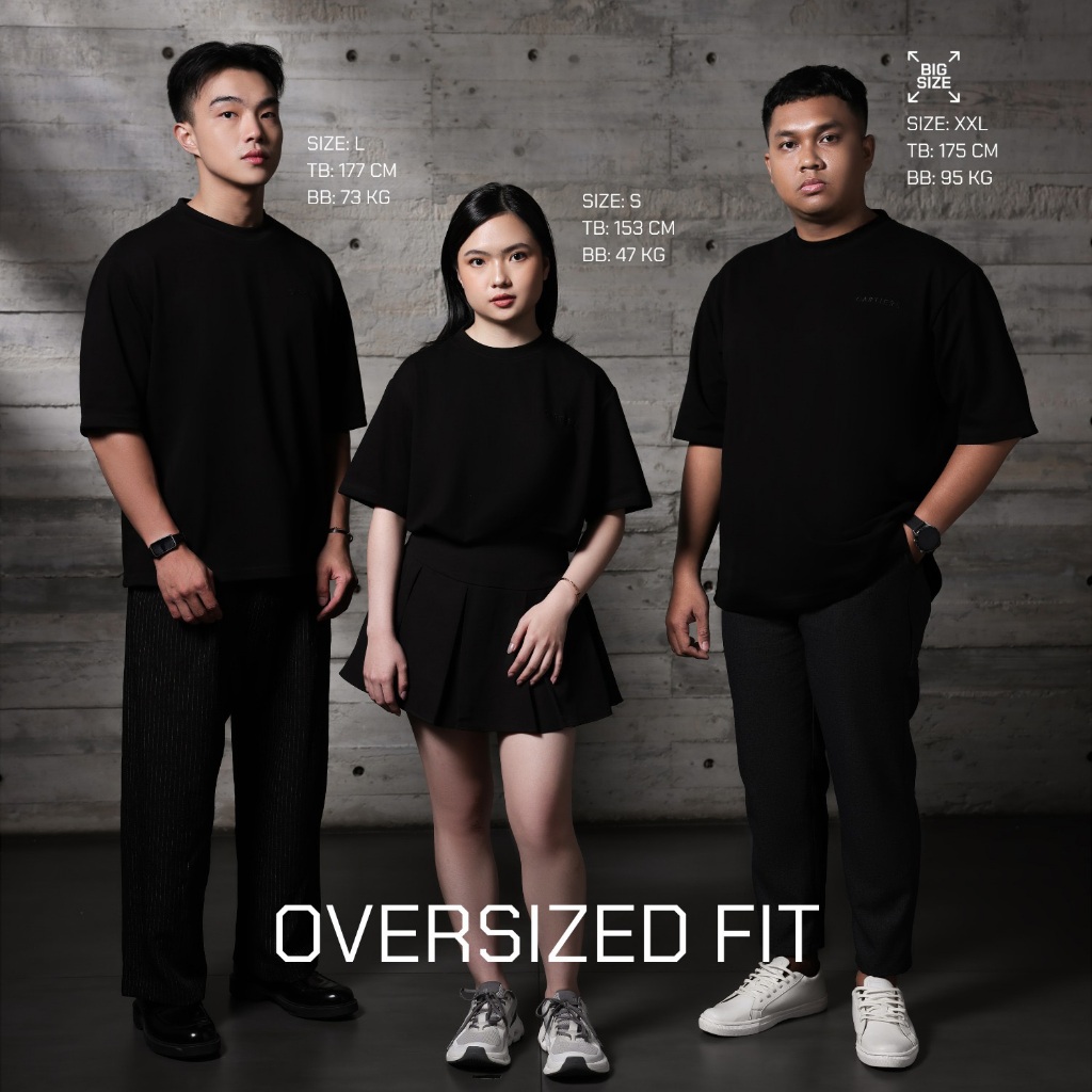 Cartiera FLO Shirt Kaos Oversize Pria Wanita Premium T Shirt Kaos Polos Warna JetBlack