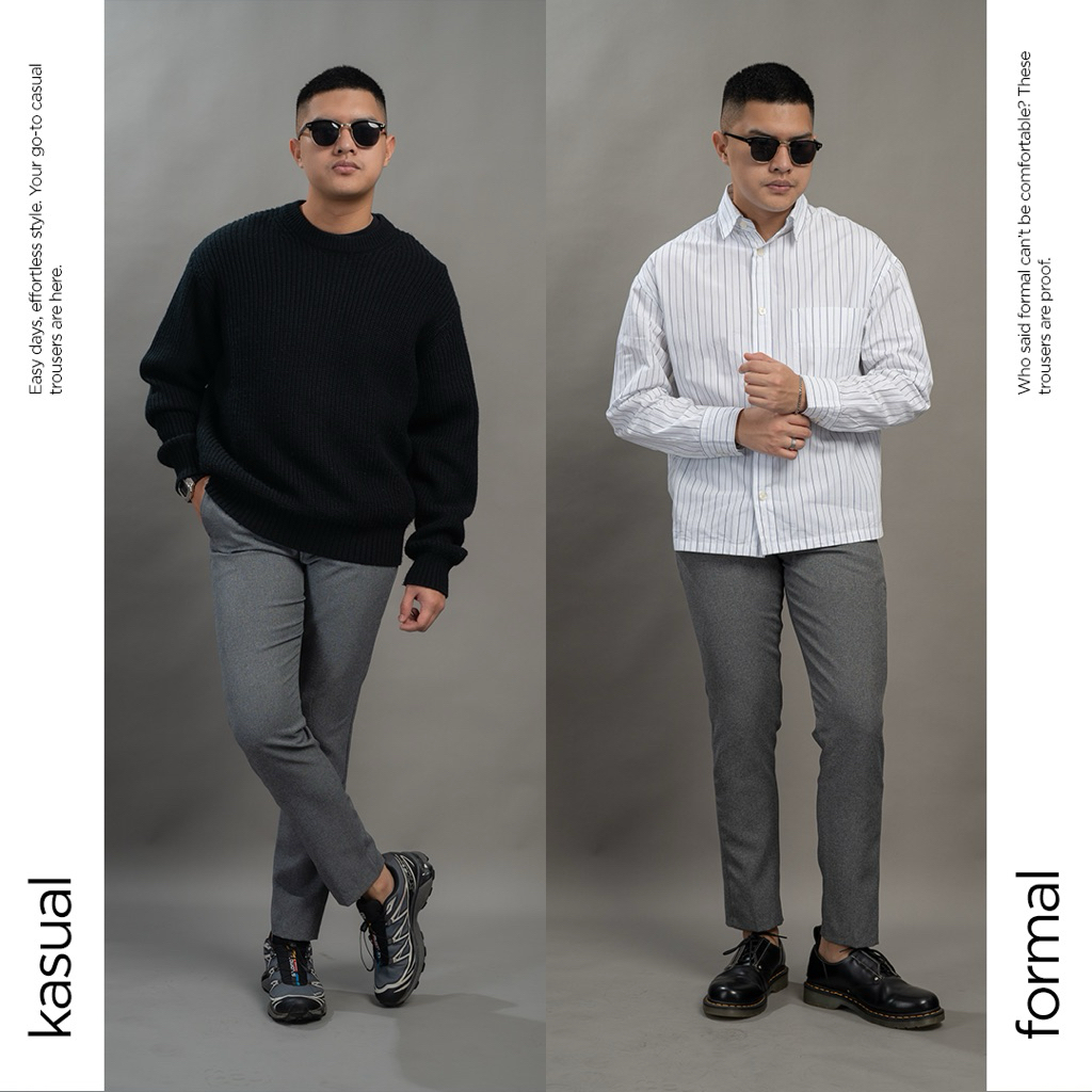 Froyemul LIGHT GREY TROUSERS | Celana Bahan Formal Pria Slim Fit