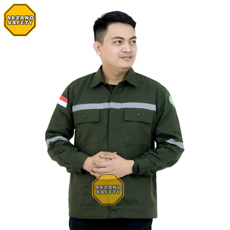 Baju safety lengan panjang seragam kerja lapangan kemeja proyek atasan bahan premium