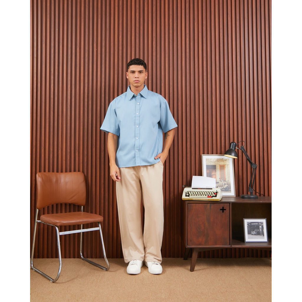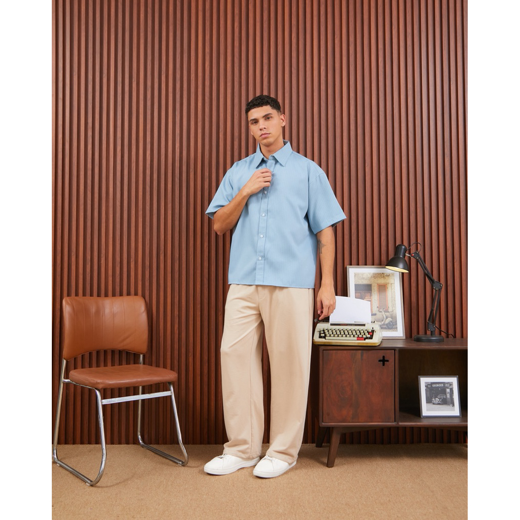 HAIBRO - Kemeja Mino Stripe Boxy Oversized Lengan Pendek