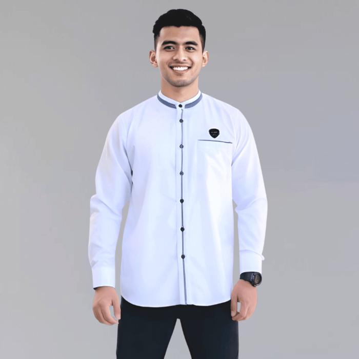 [Star] Baju Koko Putih Lengan Panjang Kemko Hadroh Kemeja Koko Dewasa Kurta Taqwa Baju Muslim Pria Kekinian Casual - Put