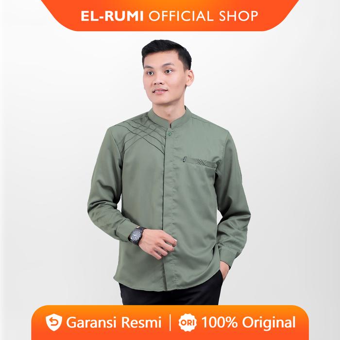 [Star] Baju Koko Elrumi Atasan Muslim Pria Dewasa Lengan Panjang Motif Marvel Polos Warna Sage Kombinasi List Jaring - J