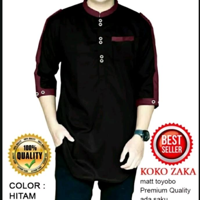 [Star] Baju Muslim Kurta Zaka Lengan 3/4 Katun Terkece Koko - MAROON, M