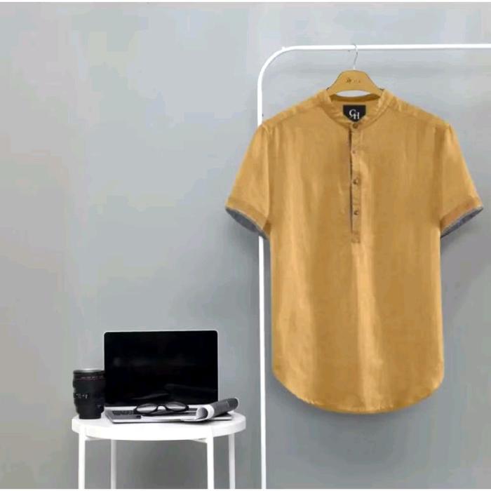 [Star] koko kurta hanafi koko kurta polos koko casual terbaru Baju Pria Dewasa Katun Atasan Muslim - abu, m