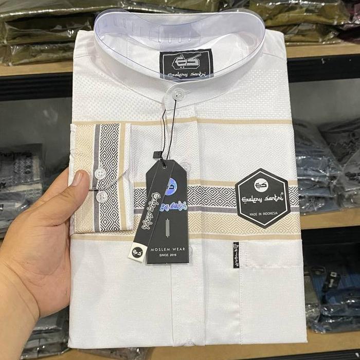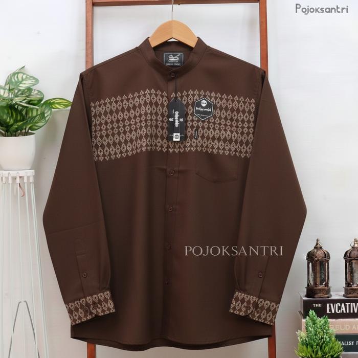[Star] Galery Santri Baju Koko Pria Kemeja Shanghai Lengan Panjang Warna Dark Oreo Katun Madinah Songket Size M L XL XXL