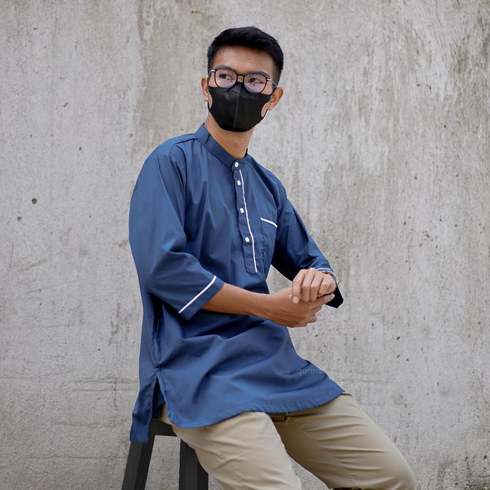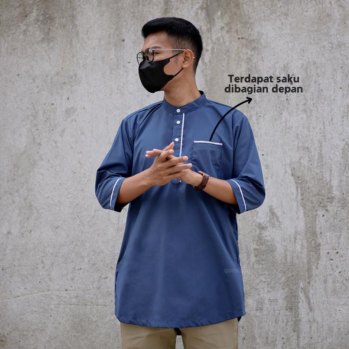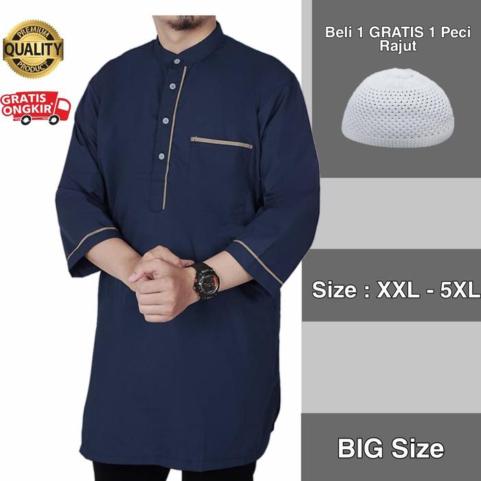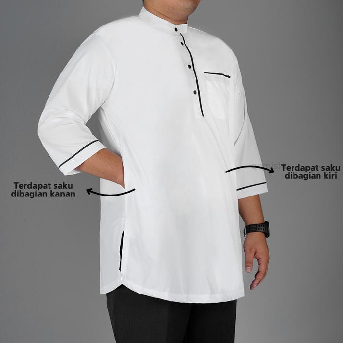 [Star] Baju Koko Kurta Muslim Pakistan Pria Qomishu Jumbo Big Size - Hitam, M