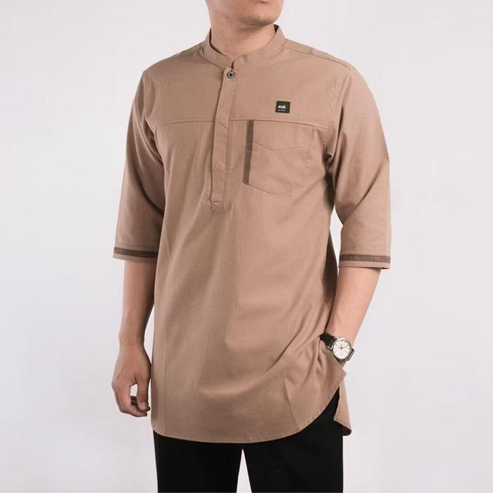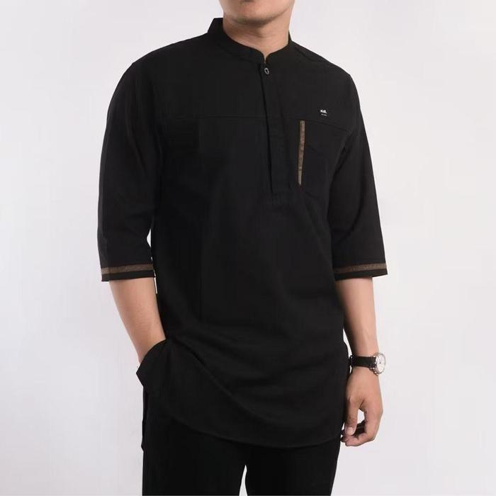 [Star] Baju Muslim Pria Lengan 3/4 Bahan Katun Toyobo Premium Baju Koko Kurta Emran - Hitam, M