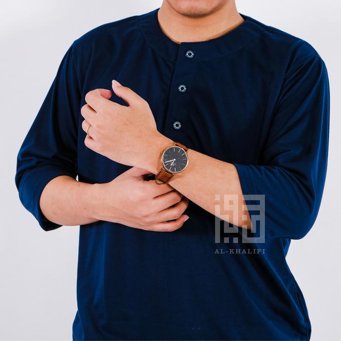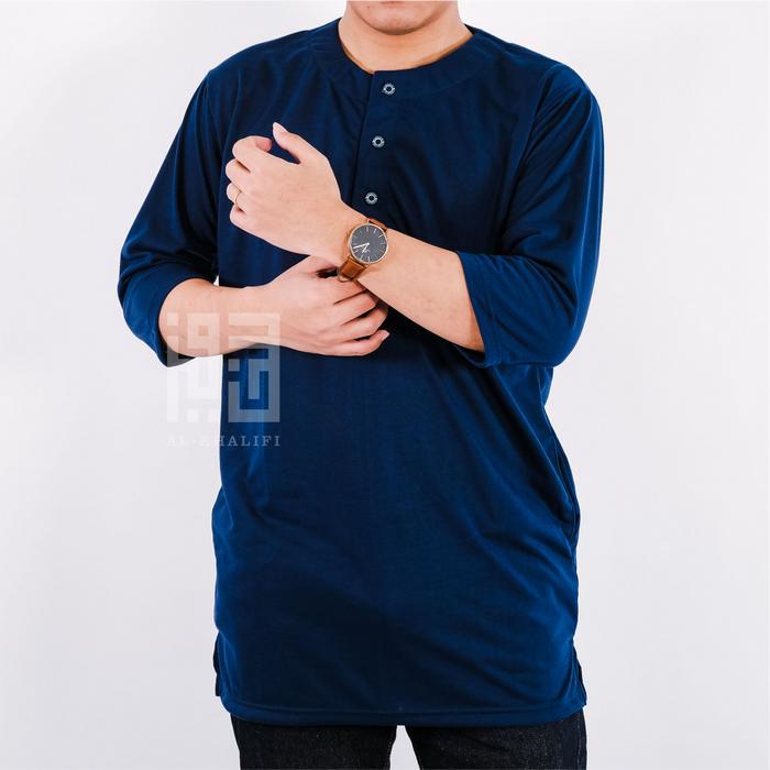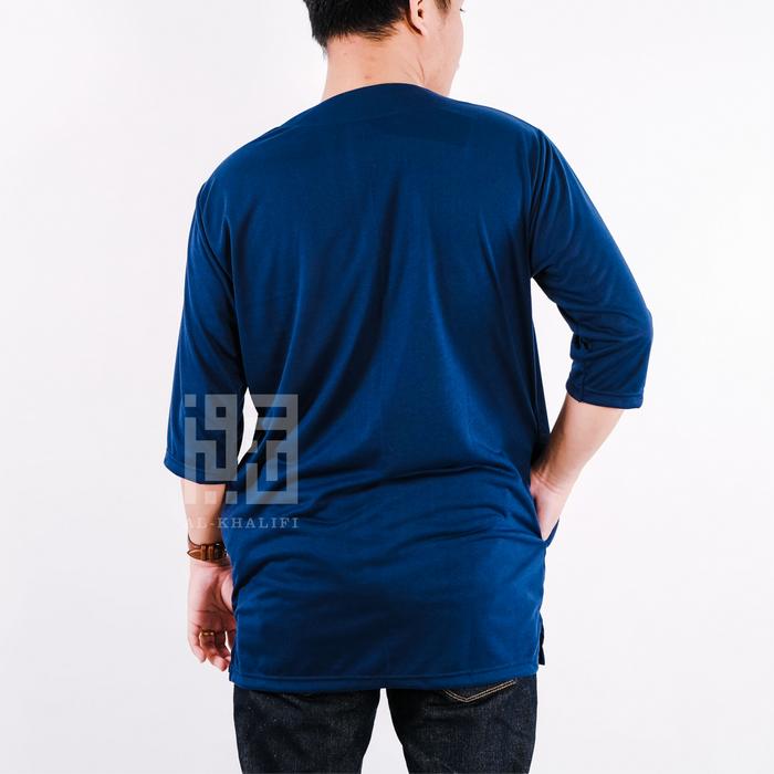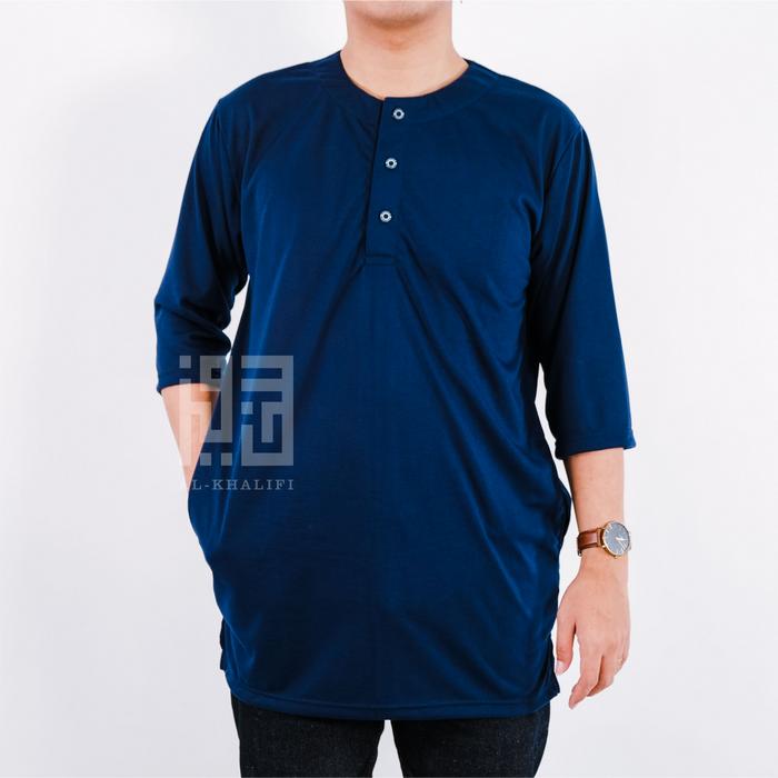 [Star] Kurta Pakistan Bahan Kaos Lengan 3/4 Baju Koko Muslim Fashion Modern Nyaman Panjang - Navy, S