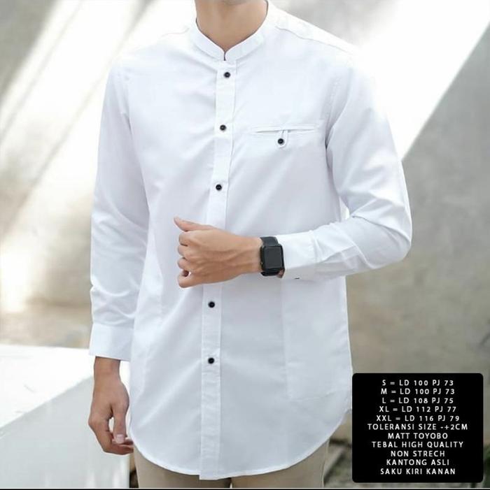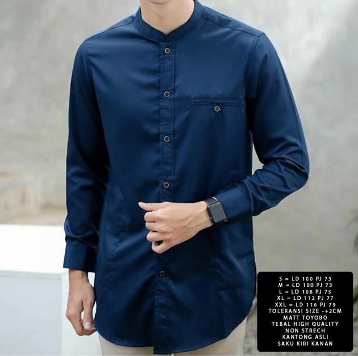 [Star] Qaireen Toyobo Baju Koko Muslim Pria Kurta MARKO Lengan Panjang Kancing High Kerah Dewasa - Hitam, L