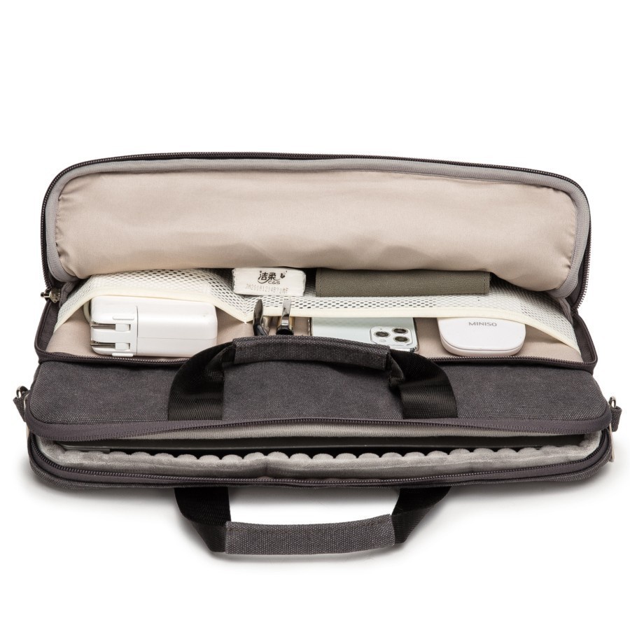 Kinmac Canvas Selempang Tas Laptop / Macbook Sleeve Longstrap Shockproof Ukuran 13 - 16 Inch