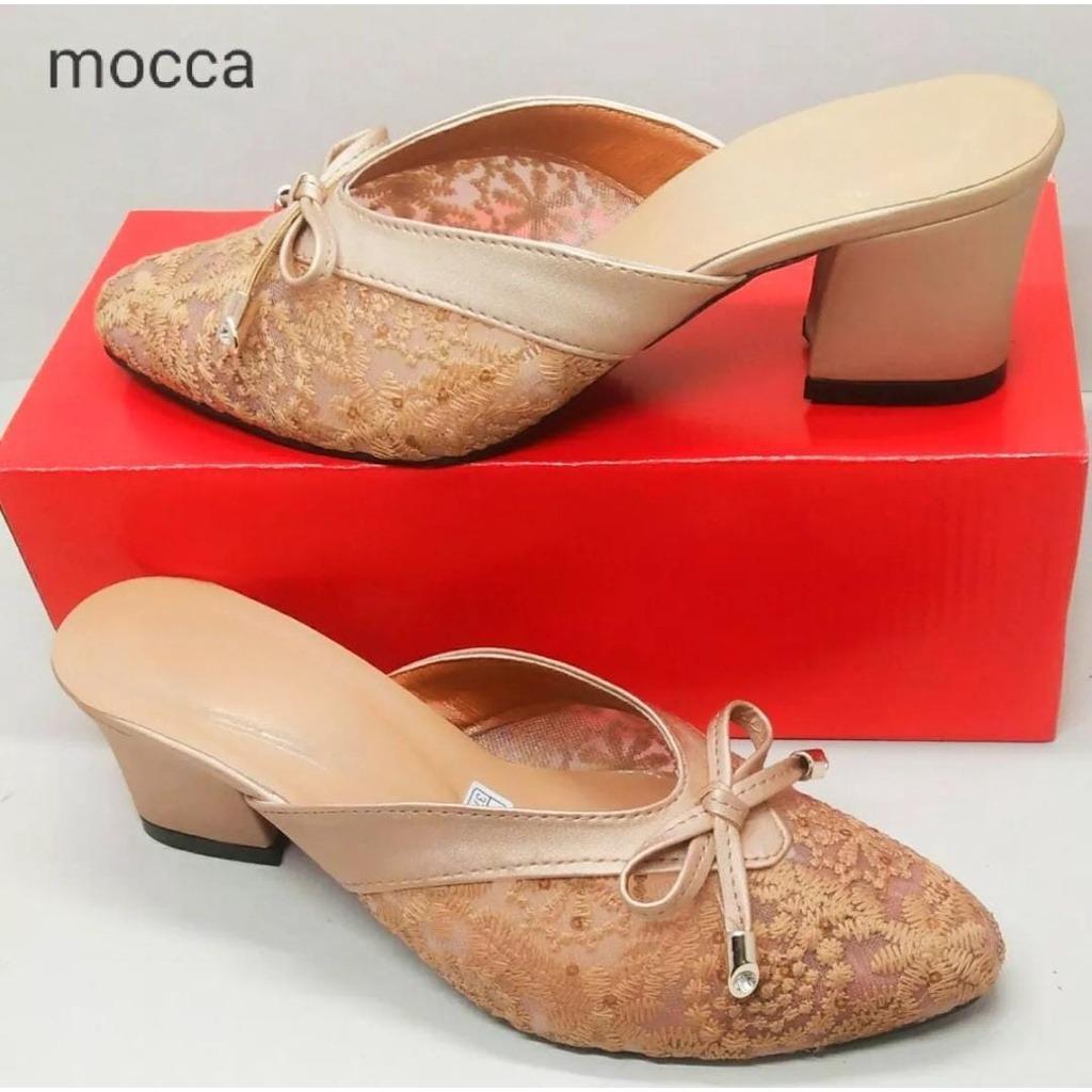 Sepatu Sandal High Heels Brukat Gisel Sepatu Sandal Pesta Hak Tahu 5cm