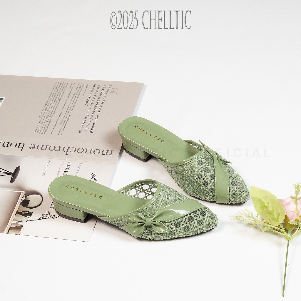 GALAXY Sepatu Sandal Wanita Mules Bustong Brukat Hak Tahu 3cm Weeding Sendal Pesta Kondangan Pengantin Cewek Selop Slip