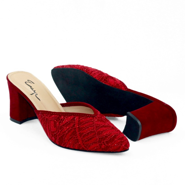 Emye EM01- Sepatu Sandal Heels Brukat Wedding Pesta Wanita Hak 7cm