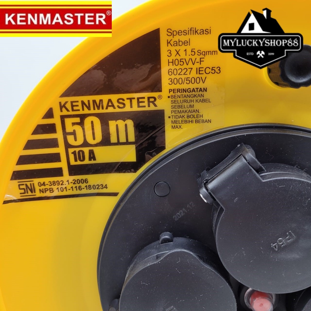 Kenmaster Kabel Roll 50 Meter 3 x 1.5 mm 10A 50m SNI 4 Lubang Steker