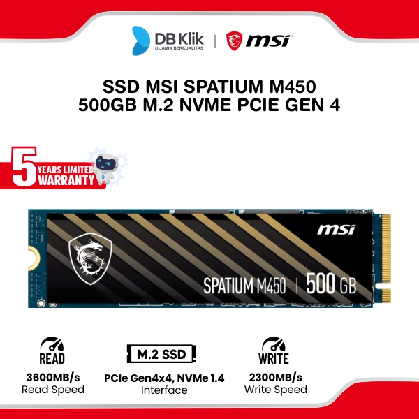 Msi Spatium M450 V1 Ssd 500Gb M.2 Nvme Pcie Gen 4