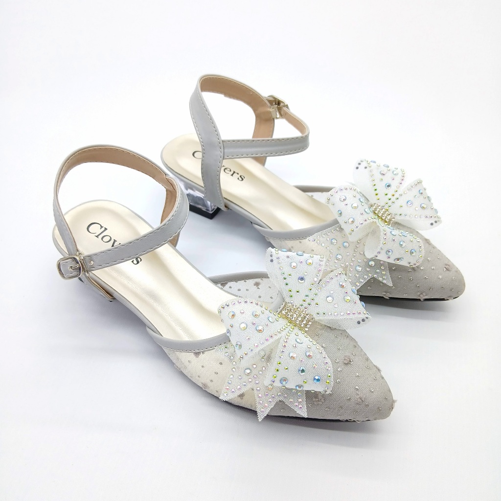 Clovers Shoes 404 Sandal Perempuan Dewasa Brukat Wanita Sandal Pesta Tali Hak kaca 3Cm