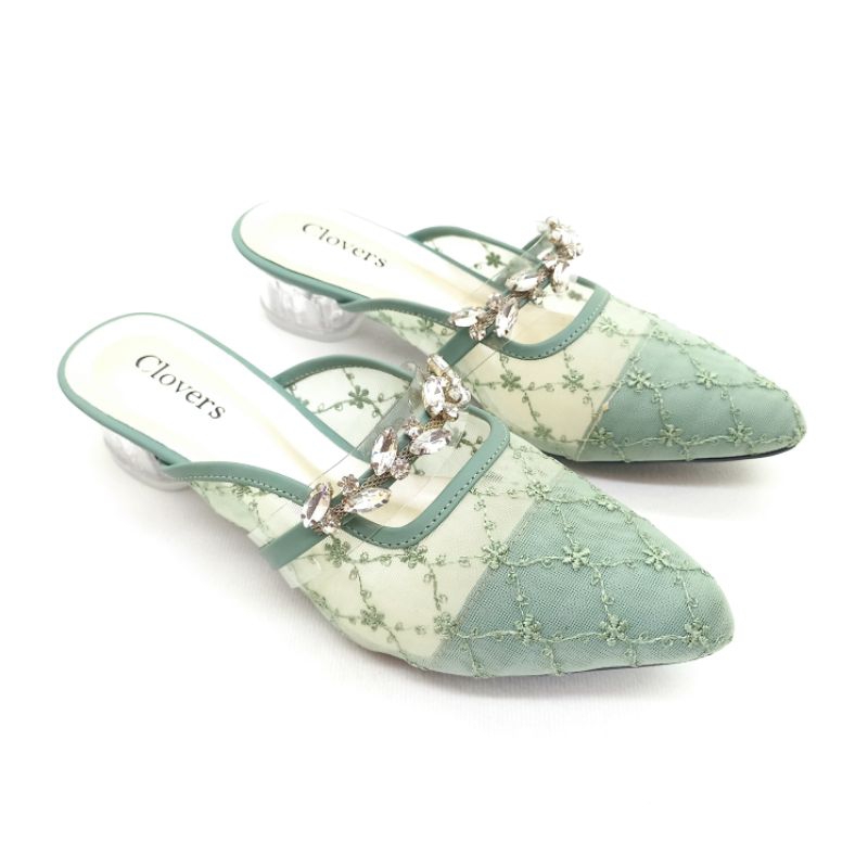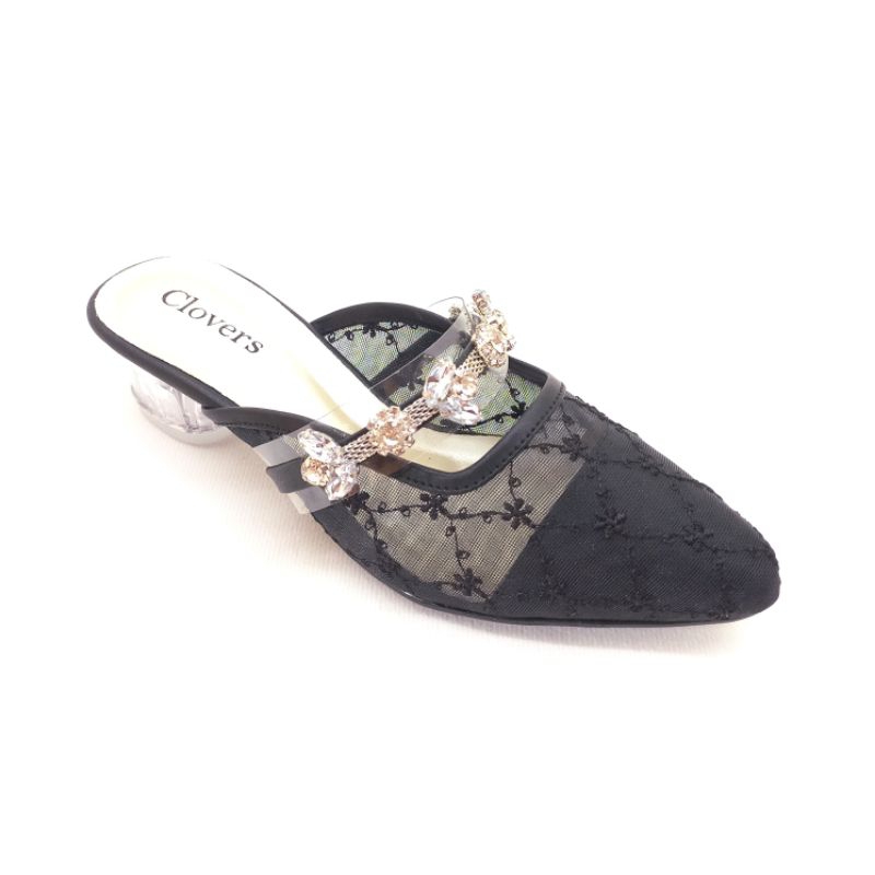 CL230 - Sendal Wanita Brukat Pesta Hak kaca 3cm Cloversshoes