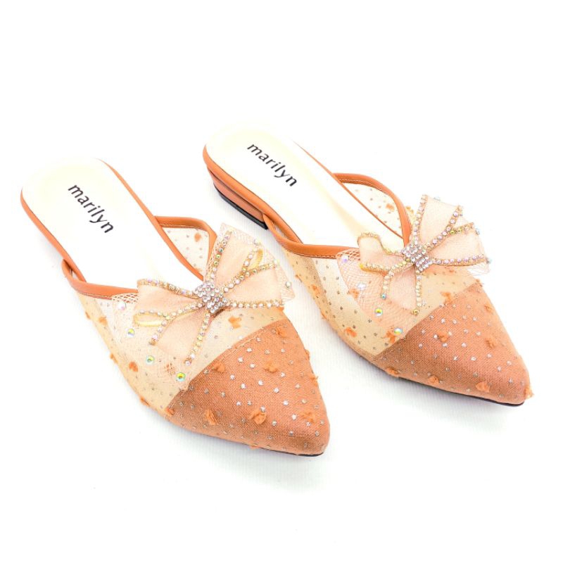 Marilyn Cantika - Sandal Brukat Wanita Sandal Pesta Ibu dan Anak Sandal Formal Hak Tahu 2 cm