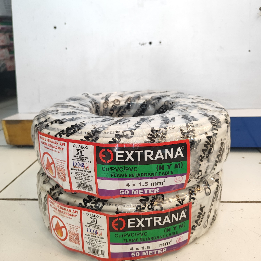 Kabel Listrik Tembaga Tunggal NYM 4x1.5 Extrana 4x1,5mm SNI Original Roll 50 Meter