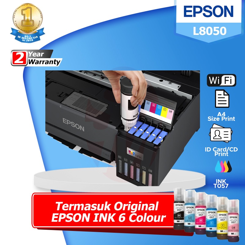 EPSON Printer L8050 Wireless A4 Photo Printing, Pvc Id Card, Cd/Dvd