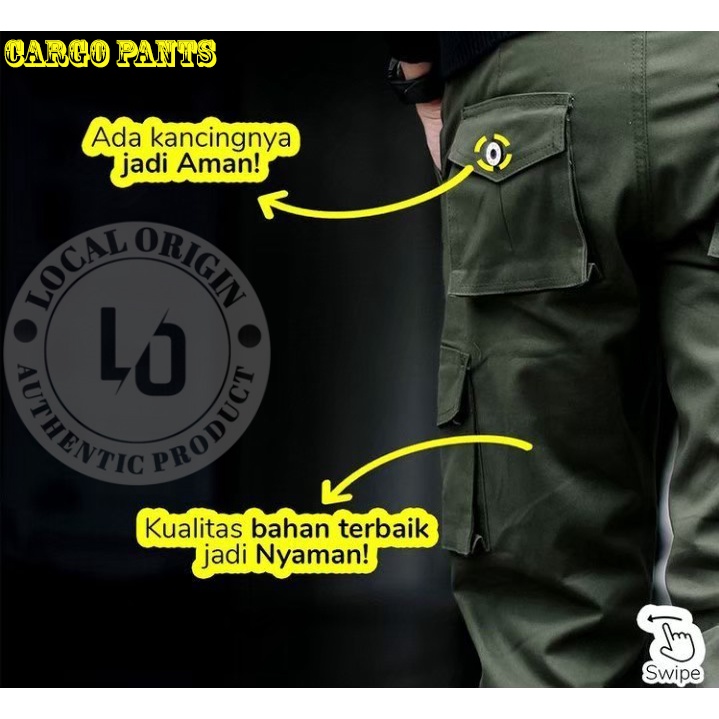 CELANA CARGO PRIA JUMBO SLIMFIT HITAM - CARGO PANTS PREMIUM HIGH QUALITY - CELANA GUNUNG PDL