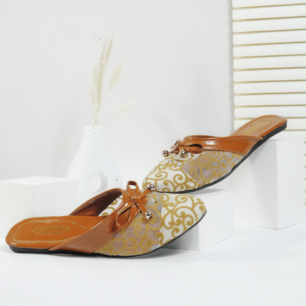 Sepatu Sandal Wanita Slop Hitam Brokat Terbaru 2024