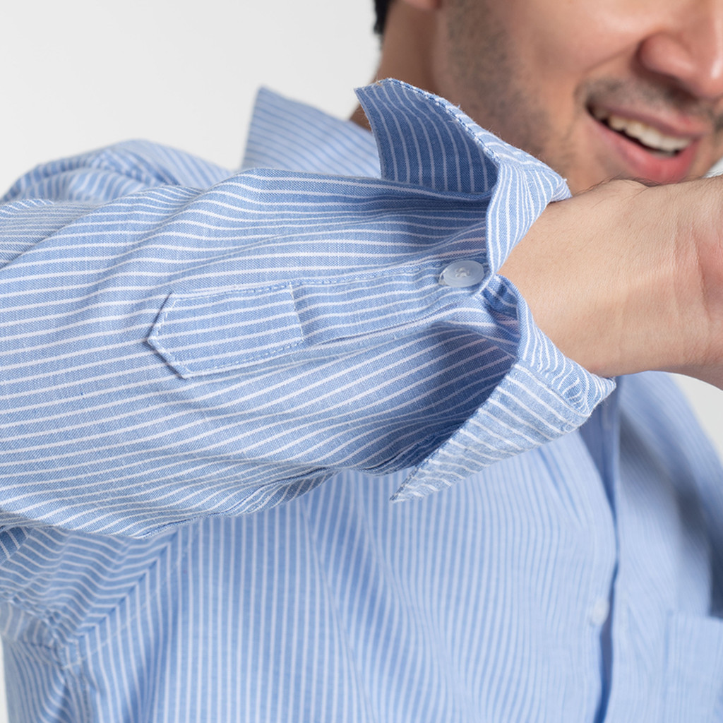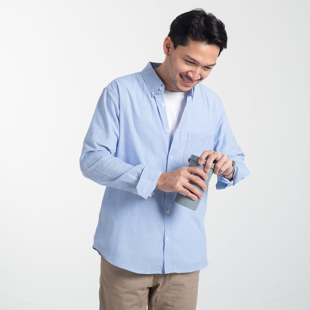 Kemeja Garis Pria WOODCUTTER Basic Luxton Stripes - Light Blue Biru Muda Lengan Panjang
