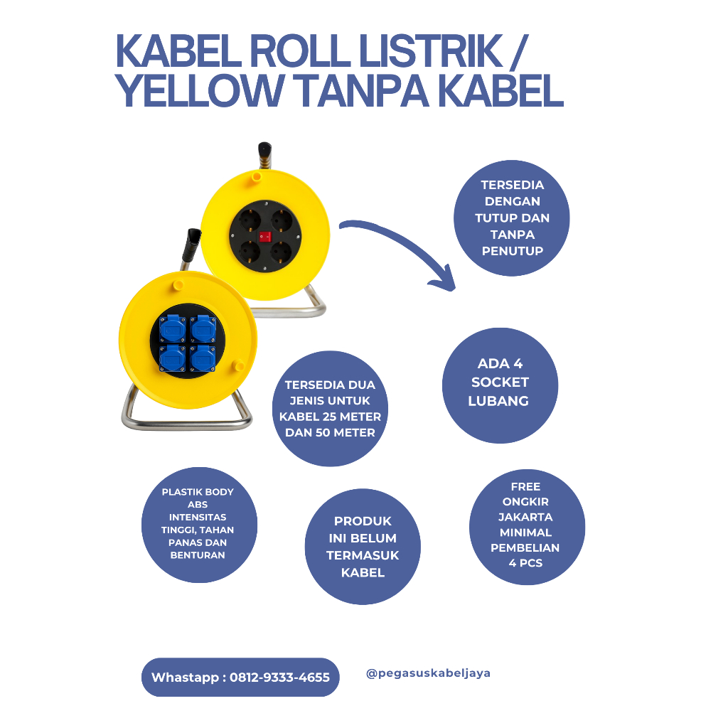 Kabel Roll Kuning 25M dan 50M / Kabel Gulungan / Gulungan Kabel Listrik / Colokan Listrik / Stop Kontak - Tanpa Kabel